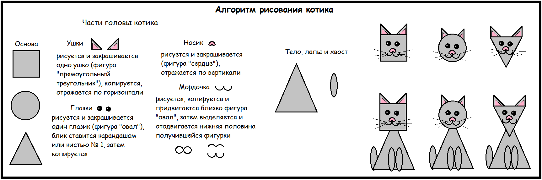 Учимся рисовать животных на основе геометрических фигур на примере рисования котика